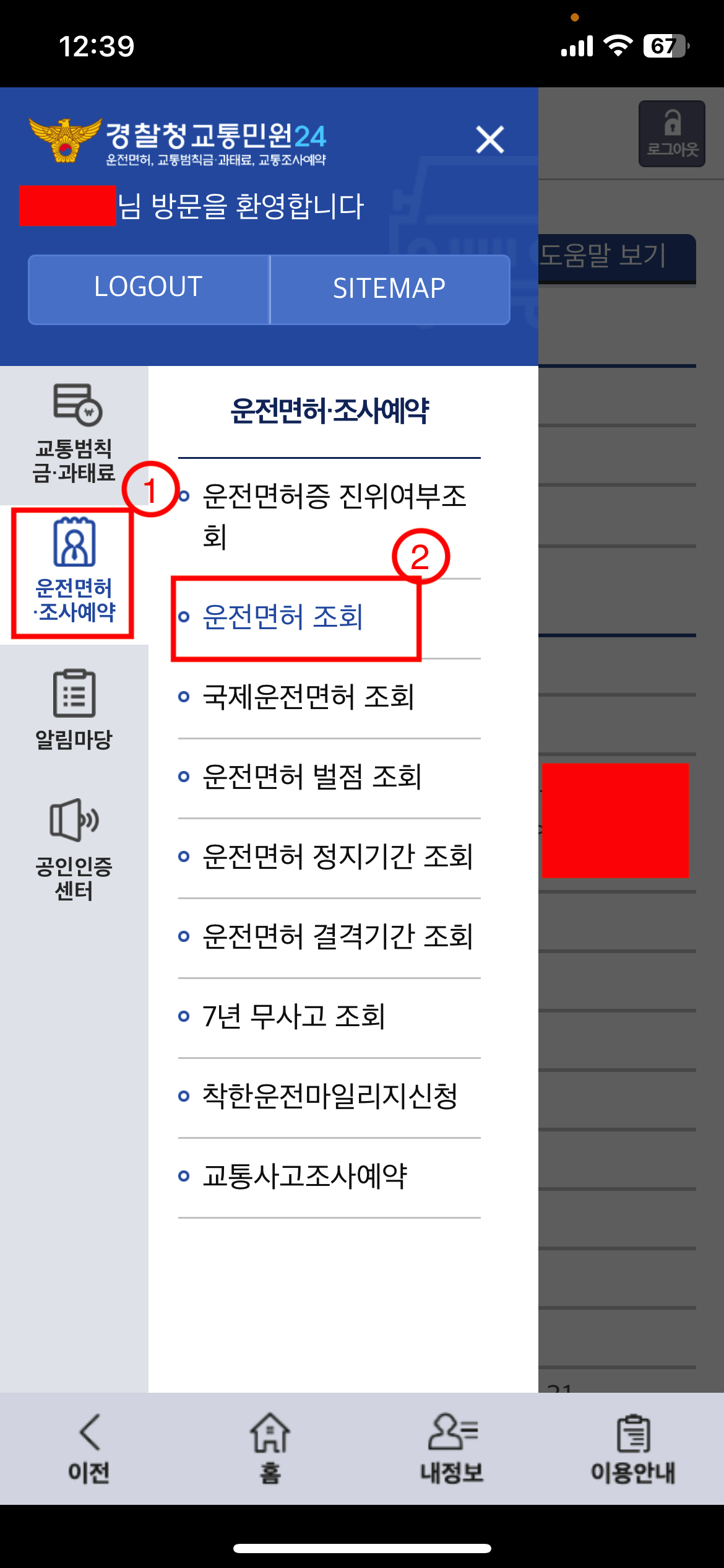 - 자세한 운전면허 정보를 보고 싶을 경우