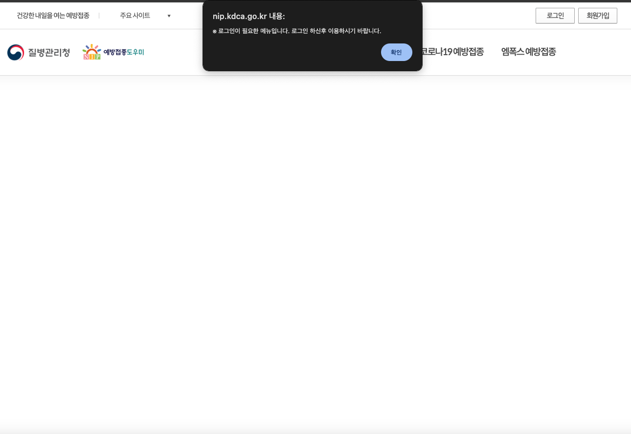 예방접종도우미 사이트 접속
