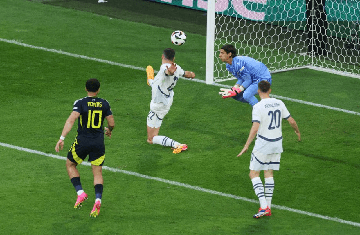 - 경기 초반부터 양 팀은 치열한 공방전을 펼쳤습니다. 스코틀랜드는 1차전에서 독일에 1-5로 대패한 아쉬움을 만회하고자 적극적인 공세를 펼쳤고, 스위스 역시 1차전 헝가리전 승리의 기세를 이어가고자 노력했습니다. 전반 13분, 스위스의 파비안 셰어가 슈팅을 막으려다 몸에 맞고 자책골로 이어지면서 스코틀랜드가 먼저 앞서 나갔습니다. 이로 인해 스코틀랜드는 예상치 못한 선제골을 얻으며 경기를 유리하게 이끌어갔습니다. 그러나 스위스는 곧바로 반격에 나섰습니다. 전반 26분, 스위스의 주전 미드필더 제르단 샤키리가 동점골을 기록했습니다. 샤키리는 스코틀랜드 수비수의 패스 미스를 바로 기회로 삼아 페널티 박스 외곽에서 강력한 왼발 슈팅으로 골망을 흔들며 스코틀랜드의 골키퍼를 무력화시켰습니다. 이로써 경기는 1-1 동점이 되었습니다. 이후 양 팀은 추가 득점을 위해 치열한 공방을 벌였지만, 전반전은 더 이상의 득점 없이 1-1로 마무리되었습니다. 후반전에서도 양 팀은 승리를 위해 총력을 기울였지만 결국 경기는 1-1 무승부로 종료되었습니다. 이 결과로 스위스는 승점 4점을 기록하며 A조 2위를 유지했습니다. 반면 스코틀랜드는 첫 승점(1무 2패)을 획득했지만, 여전히 A조 최하위에 머물렀습니다. 이번 경기에서 양 팀은 비슷한 수준의 경기력을 보여주었습니다. 양 팀 모두 승리를 위해 끝까지 노력하는 모습을 보여주었습니다. 스코틀랜드는 1차전 대패의 충격에서 벗어나 어느 정도 회복된 모습을 보여주었습니다. 특히 후반전에 보여준 집중력과 투지는 긍정적으로 평가할 만합니다. 그러나 여전히 결정적인 기회에서의 마무리가 아쉬웠고, 이는 앞으로 개선해야 할 과제로 남았습니다.