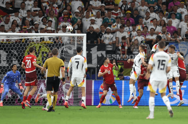 - 스위스는 이 경기 전까지 1승 1무로 좋은 성적을 거두고 있었습니다. 조별리그 마지막 경기에서 승리를 거둔다면 조 1위로 16강에 진출할 수 있는 상황이었습니다. 경기 초반부터 스위스는 공격적인 모습을 보였습니다. 그들의 노력은 결실을 맺어 선제골을 기록했습니다. 이 골로 스위스는 경기 주도권을 잡았고, 독일에 심리적 압박을 가했습니다. 하지만 독일은 쉽게 무너지지 않았습니다. 홈 관중들의 열렬한 응원을 등에 업고 반격을 시도했습니다. 나겔스만 감독의 전술 변화와 선수들의 투지 넘치는 플레이로 독일은 점차 경기의 흐름을 가져왔습니다. 결국 독일의 노력은 동점골로 이어졌습니다. 이로써 경기는 1-1 균형을 이루게 되었고, 양 팀 모두 승부를 가르지 못한 채 경기를 마쳤습니다. 이 결과로 스위스는 1승 2무의 성적으로 조별리그를 마감했습니다. 비록 조 1위 달성에는 실패했지만, 무패로 16강 진출을 확정지었습니다. 경기 후 순위표를 보면, 독일이 2승 1무로 7점을 기록하며 조 1위를 차지했고, 스위스는 1승 2무로 5점을 얻어 조 2위로 16강에 진출했습니다.