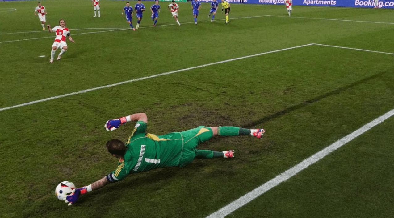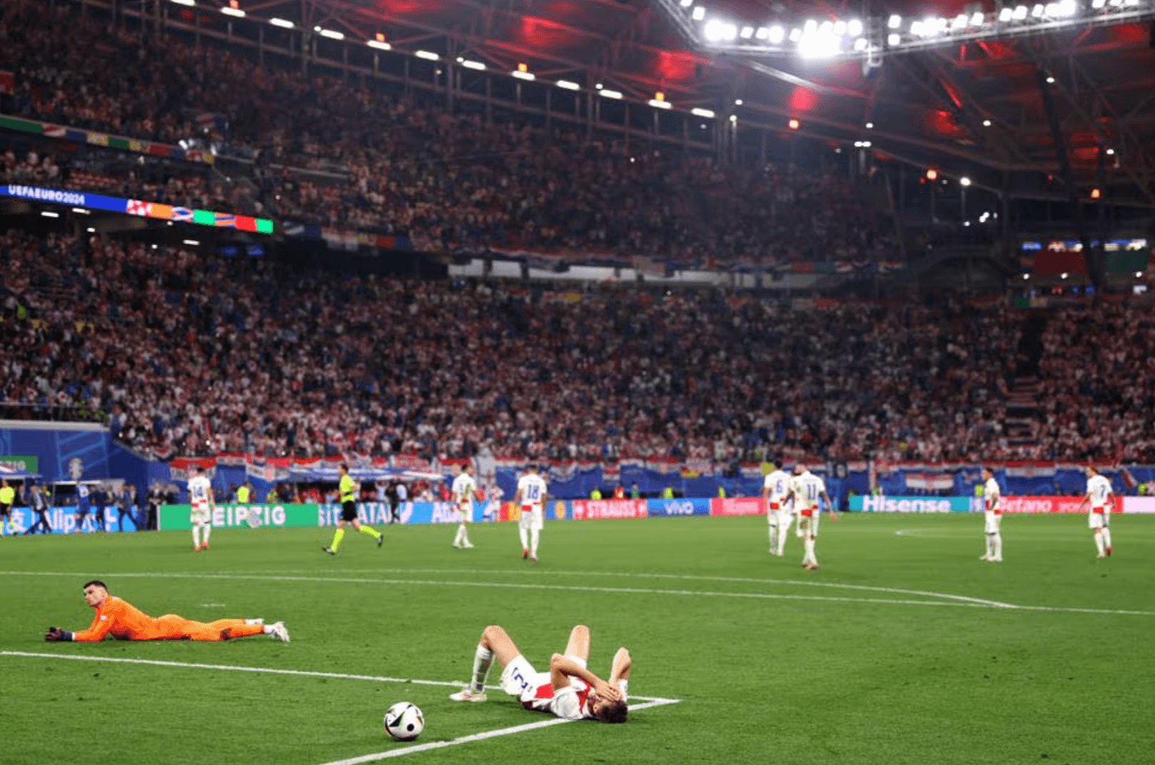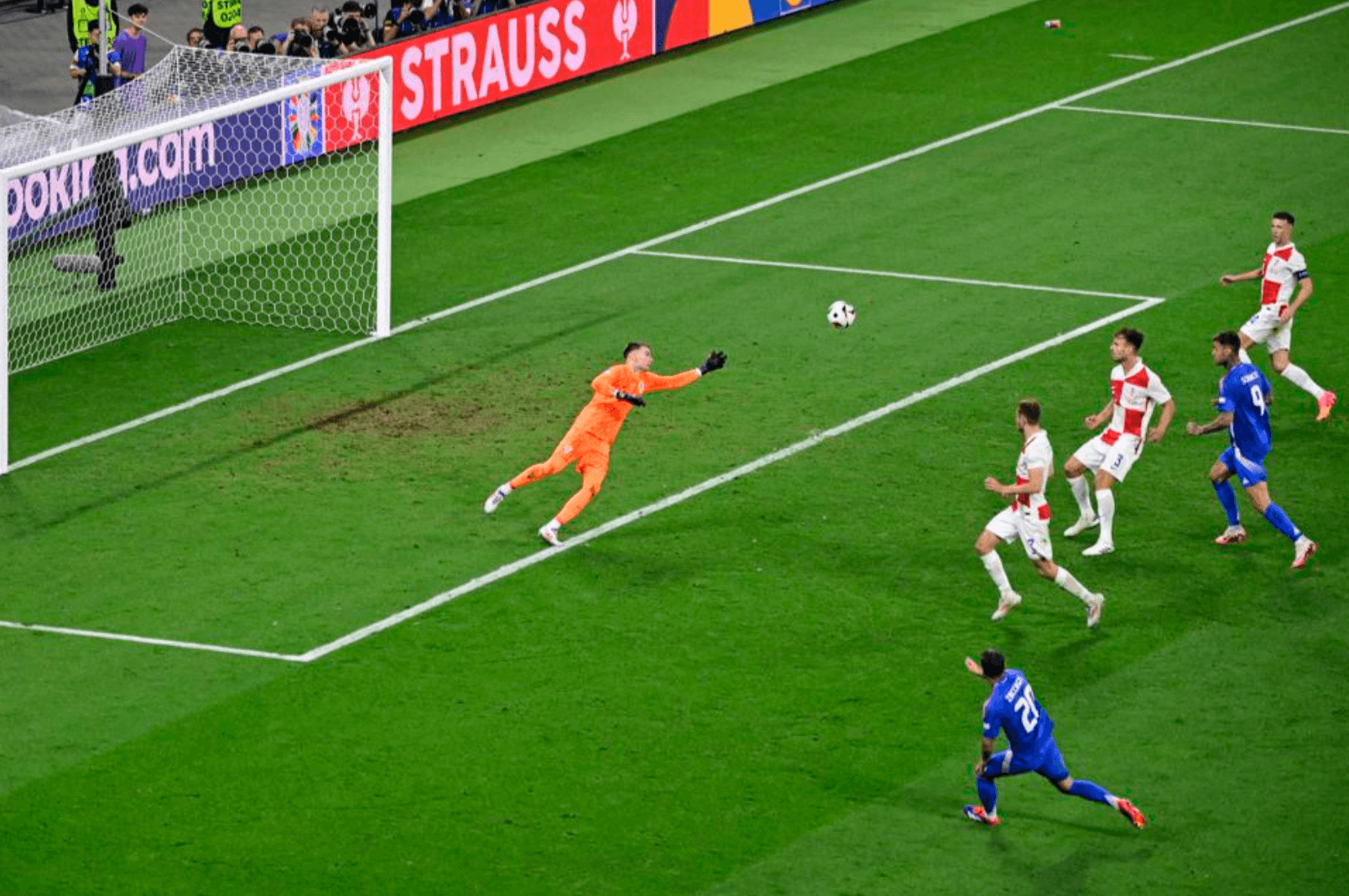 - 조별리그 B조 최종전에서 크로아티아와 이탈리아가 맞붙었습니다. 양 팀 모두에게 16강 진출이 걸린 중요한 경기였습니다. 크로아티아는 1무 1패로 조 최하위에 머물러 있었기 때문에 반드시 승리해야 하는 상황이었습니다. 반면 이탈리아는 1승 1패로 2위를 차지하고 있었지만, 패배 시 탈락할 수 있는 위험한 상황이었습니다. 경기 초반부터 크로아티아가 적극적인 공세를 펼쳤습니다. 중원의 핵심 루카 모드리치를 중심으로 빠른 패스 움직임을 보여주며 이탈리아 수비진을 흔들었습니다. 후반 10분 모드리치는 페널티킥을 실축한 지 불과 33초 만에 리바운드 상황에서 골을 성공시켰습니다. 이 골로 모드리치는 38세의 나이로 유럽축구선수권대회 역사상 최고령 득점자가 되었습니다. 모드리치의 골은 크로아티아에게 리드를 안겼지만, 안타깝게도 경기 종료 직전 이탈리아의 동점골로 인해 승리를 지키지 못했습니다. 그럼에도 불구하고 모드리치의 활약은 여전히 빛났으며, 그의 리더십과 기술은 크로아티아 팀에 큰 힘이 되었습니다. 이 골은 모드리치의 뛰어난 능력과 끈기를 보여주는 좋은 예시가 되었으며, 그의 나이에도 불구하고 여전히 최고 수준의 경기력을 유지하고 있음을 증명했습니다. 무승부의 결과로 크로아티아는 16강 진출에 실패했고, 이탈리아는 16강에 진출하게 되었습니다.